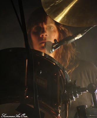 BRMC這次所做的改變,還包括前鼓手Nick Jago終於完全脫離了團隊,由The Raveonettes的原巡迴鼓手Leah Shapiro頂替,所以我們此回無須擔心鼓手突然不爽閃人(<-就是忍不住要提這件事 XD)。說來很巧,我三年前也剛好看過她還在The Raveonettes編制內的演出,Leah Shapiro不僅在樂風上,就連形象都與BRMC契合無比。看看新的宣傳照,兩男一女傳達出的黑暗煞氣撲面而來,氣勢彷彿比Nick Jago時期還強烈。事實上,我在演出時一度被Peter Hays驅趕攝影記者離場的強硬態度嚇到。我不知道他是針對任何攝影師,或單純不喜歡被拍,第三首歌「Red Eyes and Tears」尚未演奏完畢,Peter Hays就開始以手勢(包括比中指)叫台下的大炮群滾開。前三首曲子明顯昏暗的打燈,和左方Robert Levon Been(貝斯/主唱)的套頭外套,看來就像他們不願意給媒體拍到好照片一樣。我還是第一次遇到這麼不給記者面子的樂團,但猜想他們大概也完全不介意這些人會怎麼想吧。就如Peter Hays於返場時再度不顧室內禁煙的規範,大方將菸頭帶到台上,你說,還有比BRMC更叛逆、更我行我素的樂團嗎?