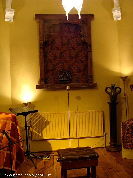 不知道在英國的古典樂迷組成,能否由今晚的觀眾群推測?然而從在場售票、安排活動事宜的工作人員,到大部分的聽眾,皆為五、六十歲以上的退休年齡層,令我有些驚訝。The Chapel內部只有一個簡單小巧的禮堂,壁面裝飾數尊藝術雕像,澄黃色系的照明十分溫暖。座位是木製折疊椅,退場時,大家會主動順手收拾,疊放在牆邊。今晚的預定曲目只有三首,加一首盛情難卻的返場後,不過一小時的表演時間,果然讓人聽的不太過癮呢。