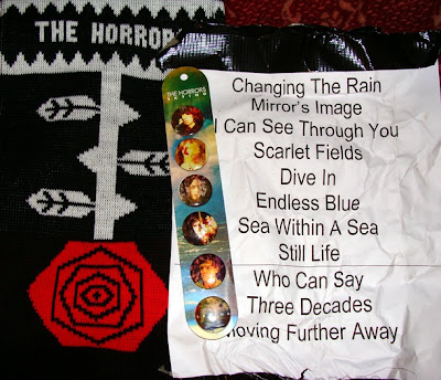 散場時,取得來到英國唸書後第九十九張,同時也是最後一張歌單後,趁著興頭,買下以往未曾入手的周邊圍巾。從紅玫瑰圖樣推測,應是《Primary Colours》時期的設計吧。正納悶找不到產地標籤時,一張貼紙白底黑字,寫著『100% Acrylic/ Made in England』,原來好端端貼在圍巾上,令我大喜過望。要知我在英國從未見過英格蘭製的圍巾(蘇格蘭製的倒是挺氾濫),就算是百分百人造纖維,也足夠我開心好幾天了!